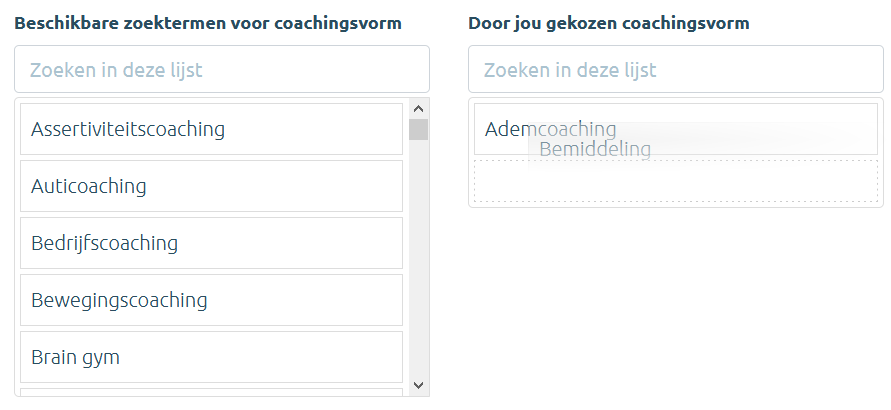 - Vind je jezelf niet terug onder een bepaalde zoekterm? Kijk dan na of je die term wel zeker geselecteerd hebt. Je bent énkel vindbaar op de termen die geselecteerd staan op jouw profiel.