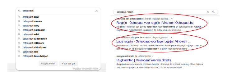 Probeer het zelf eens uit! Kijk zeker waar Vind-een-Osteopaat.be gepositioneerd is, los van de dure advertenties.